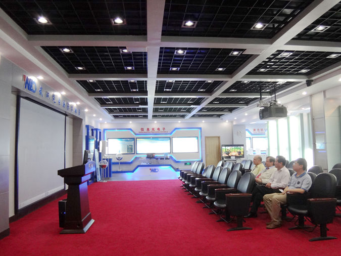 在光电国家实验室,蔡文国博士等人一同观看了该实验室的介绍视频,随后在该实验室李雄老师和刘广辉博士指引下,参观了该实验室在信息光电子、激光科学与技术、生物医学光子学、纳米与能源光电子学等研究领域的先进研究成果,还现场体验了一把通过红光高清3D光盘播放技术观看3D电影。参观期间,大家对染料敏化纳米晶太阳能电池的研究颇感兴趣,并提出了一些具体问题。
