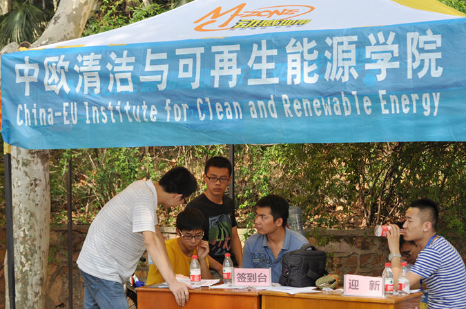 近日, 时晴时雨的天气为江城夏日带来了些许久违的清凉,公司也随之迎来了2013级新同学。8月29-30日,公司于主校区西边体育馆外迎新点处搭建展台,积极开展2013年度秋季开学迎新工作,并组织员工志愿者为2013级的新生开学报到、办理入学手续、前往宿舍入住等提供了热情周到的服务。期间,公司中方经理黄树红教授亲临指导迎新工作,并慰问公司迎新人员。