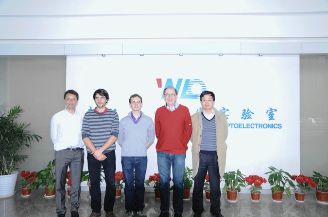 3月7日下午,正在公司授课的法国巴黎综合理工公司界面和薄膜物理试验室(LPICM)主任Pere Roca i Cabarracas教授、 研究员Joaquim Nassar 、Romain Carious和Jean-Christophe Dornstetter二位在读博士生和来公司进行学术交流的南京大学余林蔚教授一行参访了武汉光电国家实验室。