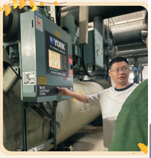 在本次实践中,能效公司安排我们前往参观武商国际广场楼宇用能优化项目,实地参观了机房控制室以及冷冻机房,项目现场的各类系统设计令人佩服,也从纸上谈兵看到了落地实行。