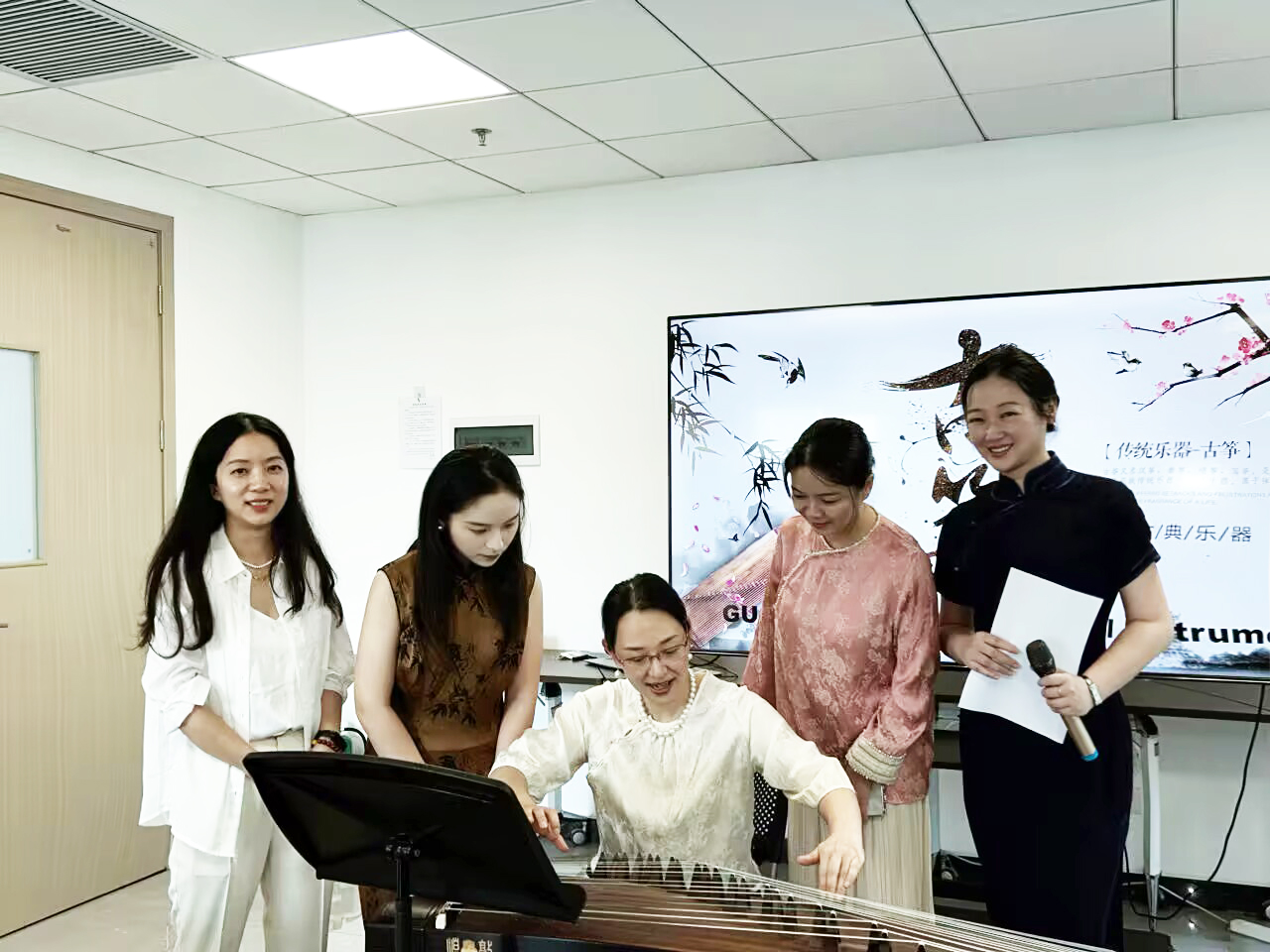 (通讯员:赵沁怡)2024年9月24日,在举国同庆的国庆佳节前夕,yl23455永利特别开展了“筝韵传情,艺展风华”古筝雅韵活动。此次活动旨在通过欣赏古筝弹奏,鉴赏传统乐器,向公司外籍教授及中方老师们弘扬民族文化精神,增强文化自信。