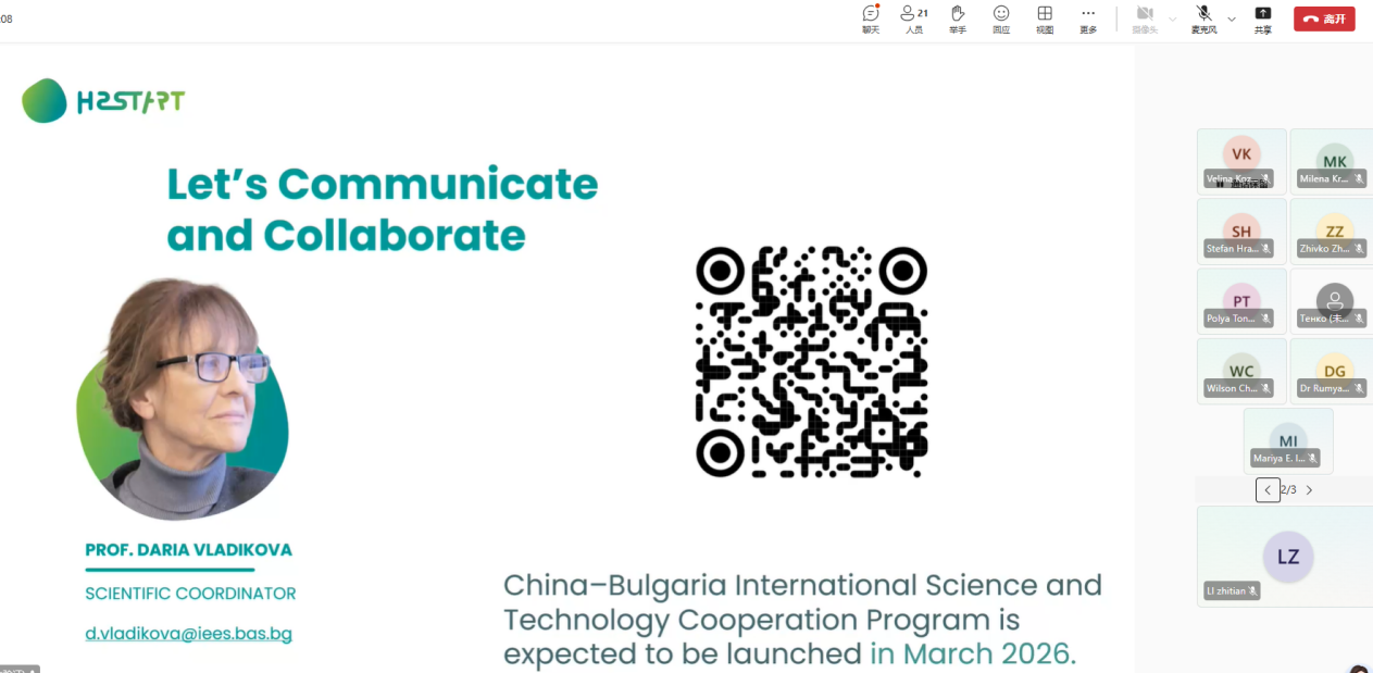 2025年11月06日,公司邀请保加利亚科公司、特拉基亚大学教授,保加利亚氢能、燃料电池与储能协会科学委员会主席 Daria Vladikova 博士作题为“Hydrogen Technologies Deployment in the EU and Bulgaria – From Policies Through Technologies to Education”的线上学术讲座,线上线下近百名各国教授与员工参与了此次讲座。