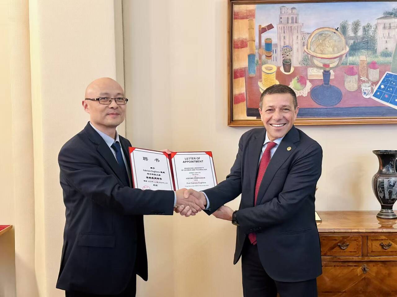 在意大利,代表团先后访问了帕多瓦大学与都灵理工大学。在帕多瓦大学,罗小兵与工业工程公司经理Fabrizio Dughiero团队就硕士项目拓展进行磋商,并参观了多个重点实验室。随后,在与校方领导的会谈中,双方一致同意将依托yl23455永利持续深化人才联合培养,并拓展至建筑设计、工业工程等领域的科研合作。会上,罗小兵代表尤政董事长向Fabrizio Dughiero经理颁授了客座教授聘书。