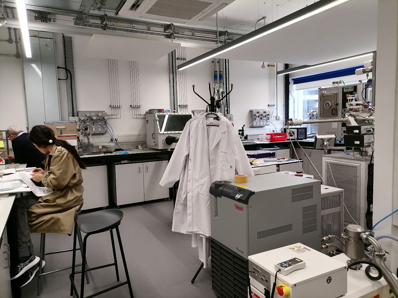 由于我在国内课题组主要以数值计算为主,很少涉及实验,因此在这里需要从头开始学习光伏、微纳结构制作的基本实验技能。实验室大多为公用,这就意味着需要在其他人的空余时间完成实验,在老师教过一次后需要自己及时举一反三,思考后续还有哪些点可以探究。在掌握了基本光电性能测量方法之后,我开始尝试重复和模仿其他论文的工作,以便我对自己课题的实验方法有一个系统认识。光凭自己是很难完成这项工作的,需要积极向其他老师和技术人员交流讨论,以便能更快更好地得出实验方案。例如当我需要制作一个多层薄膜结构时,我会约老师一起讨论使用何种沉积方法,原子层沉积,化学气相沉积还是使用溅射喷涂?实验室技术人员会介绍实验仪器和设备特点,一同分析我的结构和目标,从而减少试错时间。公司每天下午6点会关闭实验室,而做危险实验或使用大型设备时需要有技术员在场,实验室在周末也不会开放,所以在英国的学习时间实际上是比国内时间短的。在学习了基本实验技能和复现工作之外,时间已所剩不多,因此我将一部分制备样品和实验数据带回国内,方便回国后还能继续完善。