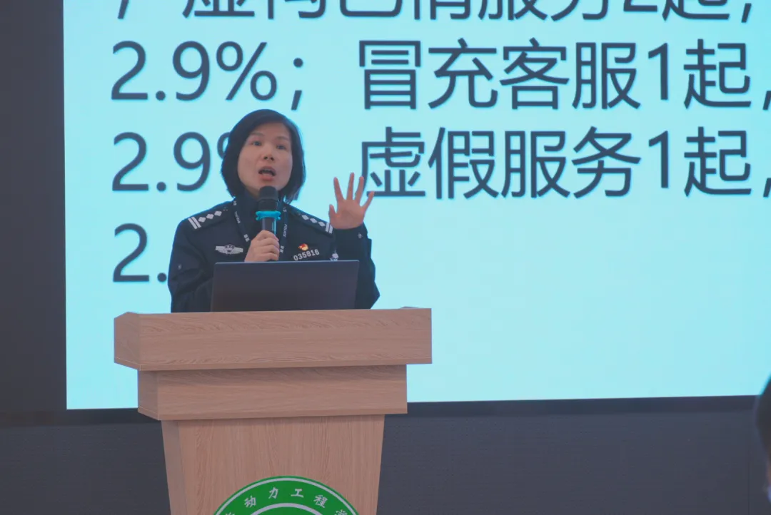 随后,喻家山派出所涂小红警官进行防诈骗安全教育讲座。涂警官首先以同学们身边的诈骗案例与数据为切入,讲解开学一个月以来的三十多起诈骗案件,用层出不穷的作案手段、触目惊心的诈骗金额为同学们敲响警钟。接着,她又系统分析了当今流行的诈骗类型和部分诈骗在心理层面上的施压手段,具体包括常见的冒充好友、商家甚至公检法机关等类型的诈骗,以及近几日高发的假售演唱会门票诈骗,以此提醒大家应当仔细辨别网络信息,从正规渠道获取所需。最后,她呼吁同学们下载国家反诈APP,并告知了同学们将来可能会 “踩雷”的帮信罪。