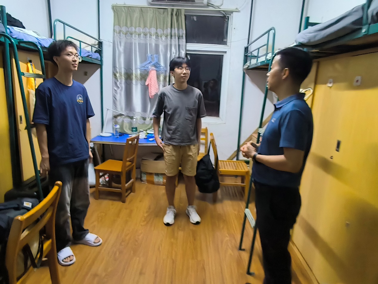 为了深入了解公司2024级新生开学阶段的思想状态和适应情况,加强师生之间的沟通与联系,9月2日晚上,公司副经理邹明清和辅导员赵怡婷一同走进2024级的新生宿舍,为新同学送去关怀与问候。