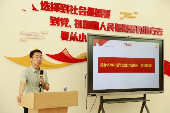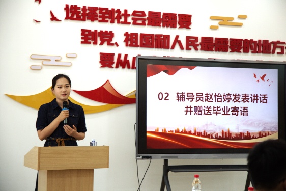 活动伊始,全体党员奏唱国歌,活动在庄严的国歌声中拉开序幕。赵怡婷发表讲话并赠送毕业寄语,她深情回顾了与毕业生党员们共同度过的时光,对他们的成长与进步表示了肯定与赞赏。