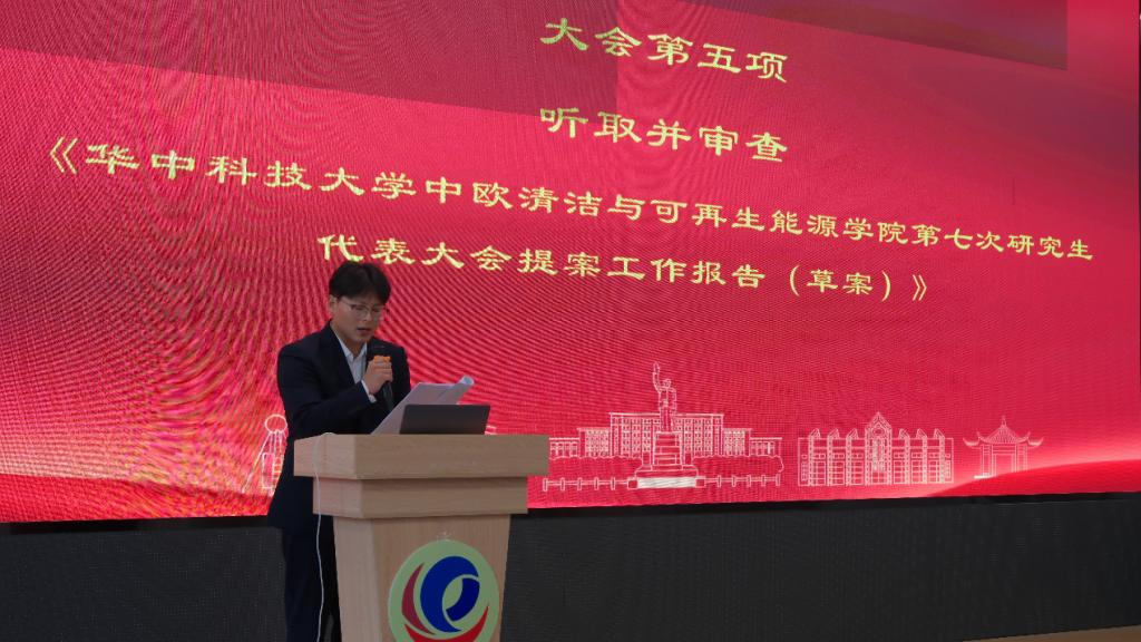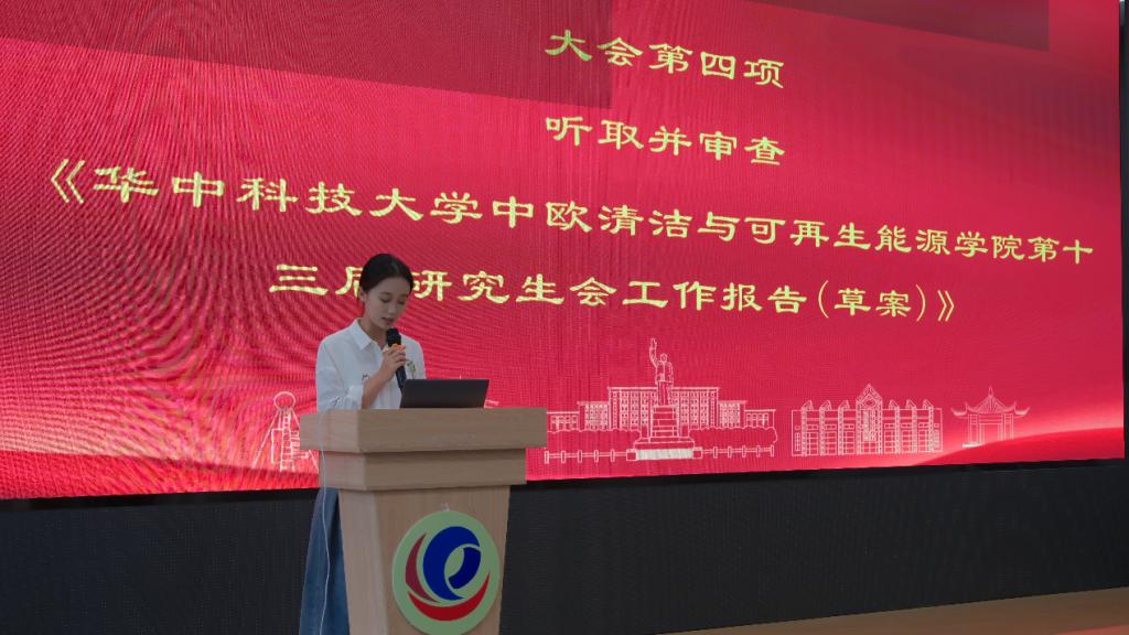 会议第四项,yl23455永利第十三届研究生会执行主席李梅子宣读了《yl23455永利第七次研究生代表大会提案工作报告(草案)》。报告总结了过去一年里第十三届研究生会在思想引领、学风促进、权益维护、文化建设等方面开展的工作以及取得的成绩。展望未来,她对中欧研会在坚定理想信念、推动组织转型、强化责任意识、架设双向交流平台、创新工作方法、打造品牌活动等方面提出了更高的期望,希望中欧研会能够做好青年的代言人、知心人和开拓人。最后,她对向中欧研会给予过关怀和帮助的领导、老师、同学、校研究生会主席团和各兄弟院系主席表达衷心感谢,并预祝大会取得圆满成功。