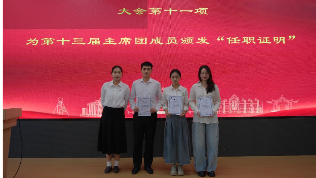 紧接着,大会进入为第十三届主席团成员颁发聘书的环节。主持人邀请上一届主席团成员依次上台领奖,以表彰他们在过去一年中为公司研究生会作出的突出贡献。仪式在隆重而简朴的氛围中举行,伴随着全场热烈的掌声,第十三届研究生会主席团成员正式获颁任职证书。