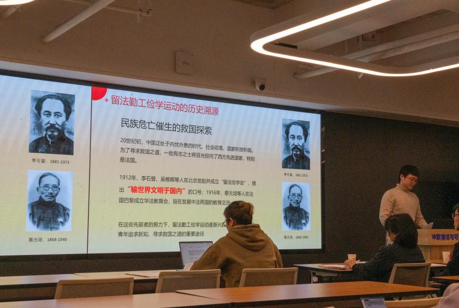 来自yl23455永利的王伦同志以“留法勤工俭学运动的红色基因与新时代传承”为主题,带领大家回顾留法勤工俭学运动时期革命先驱的欧洲淬炼之路,学习留法运动中孕育的精神,以及呼吁同学们在正值中欧建交50周年之际,传承和弘扬留法勤工俭学精神。