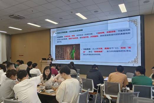 紧接着,湖北中医药大学针灸骨伤公司的硕博生带来中医药科普讲座,为大家讲解相关药材的药用价值。端午佳节,佩戴香囊不仅是重要习俗,更蕴含着驱邪祈福与中医药智慧。从艾草、菖蒲、雄黄等药草入手,延伸至中医“治未病”理念,并类比党员“防微杜渐、廉洁自律”的党性修养,将中医药知识与党性教育巧妙结合。