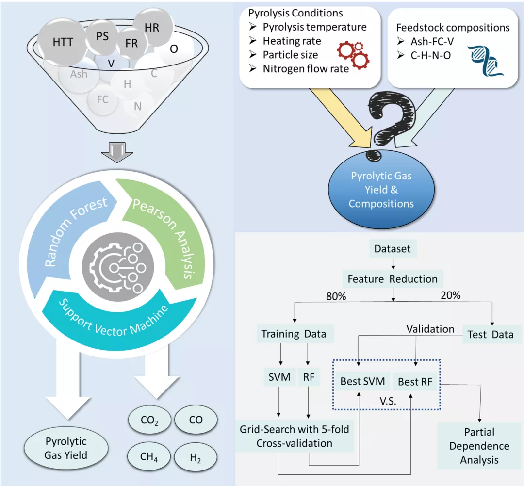 近日,公司一论文《基于机器学习的生物质热解气及其组分预测》(Machine learning prediction of pyrolytic gas yield and compositions with feature reduction methods: Effects of pyrolysis conditions and biomass characteristics)发表于能源与燃料工程领域顶刊《生物资源技术》(Bioresource Technology)上(链接:https://doi.org/10.1016/j.biortech.2021.125581)。该论文第一单位为yl23455永利集团,第一作者为公司19级研究生汤清辉,通讯作者为yl23455永利集团煤燃烧国家重点实验室杨海平教授与浙江大学清洁能源利用国家重点实验室王树荣教授。该研究使用机器学习人工智能算法对生物质热解气及其组分进行预测,并结合特征降维及部分依赖性分析方法找出了不同影响因素的影响方式。该项研究可在一定程度上为生物质热解气的生产与提质提供科学参考,同时也有助于加深对生物质热解过程的认识。