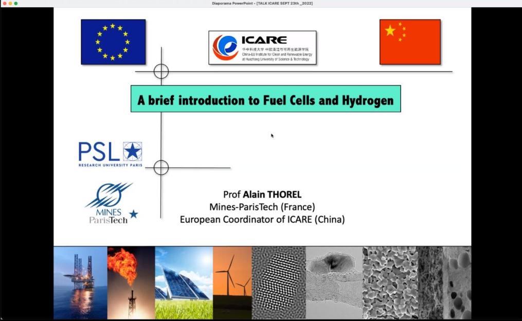 2022年9月23日,yl23455永利欧方协调人Alain THOREL教授在Teams会议平台为公司师生带来了题为“Introduction to Fuel Cells & Hydrogen”的科技讲座,吸引了全院160余名师生线上参与。