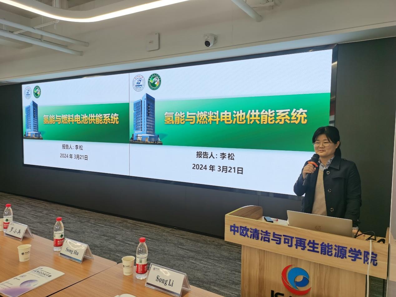 休息结束后,公司中方导师李松副教授进行题为“氢能与燃料电池供能系统“的主题报告。她对相关系统的原理与应用进行了介绍,并对同学们关于氢储相关的问题就科研工作、就业前景等多个方面做出了详细的解答。