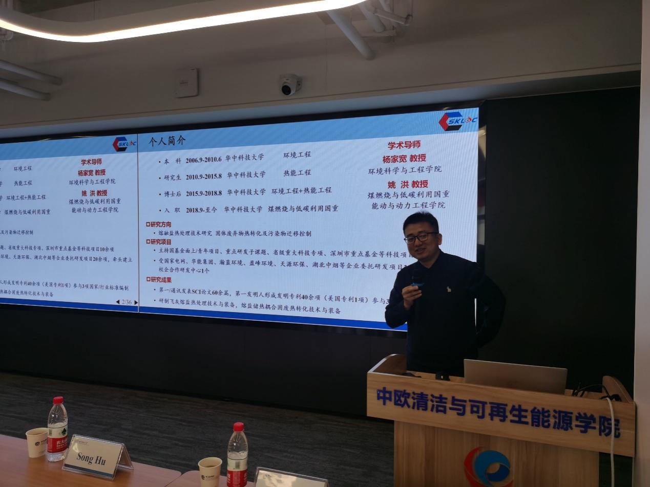 在领导致辞结束后,来自能源与动力工程公司的胡红云副教授进行题为“新能源形势下熔盐储热的应用探索”的报告。他首先介绍了目前熔盐储热形势,又就相关技术的现有研究和未来前景进行了分享,引发了在场师生的热议。
