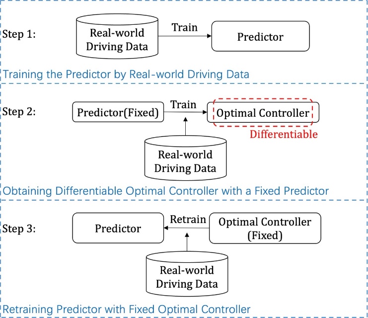 该方法通过加入重新训练可微分的预测器的附加步骤,改进了传统的能量管理预测最优控制方法。这种调整确保了预测器不会基于与能量管理无关的评估标准盲目地提高其性能,这在以前的研究中是常用的。而是专注于在“预测+最优控制”的框架下增强能量管理的整体性能。在 NGSIM 数据集上,将本文介绍的方法与全局最优下的动态规划方法所得到的结果和传统预测最优控制方法进行了比较。实验证明,本文的方法在训练数据集和测试数据集上都优于传统的能量管理方法。同时,在“预测+最优控制”方法中优化预测器的传统做法可以