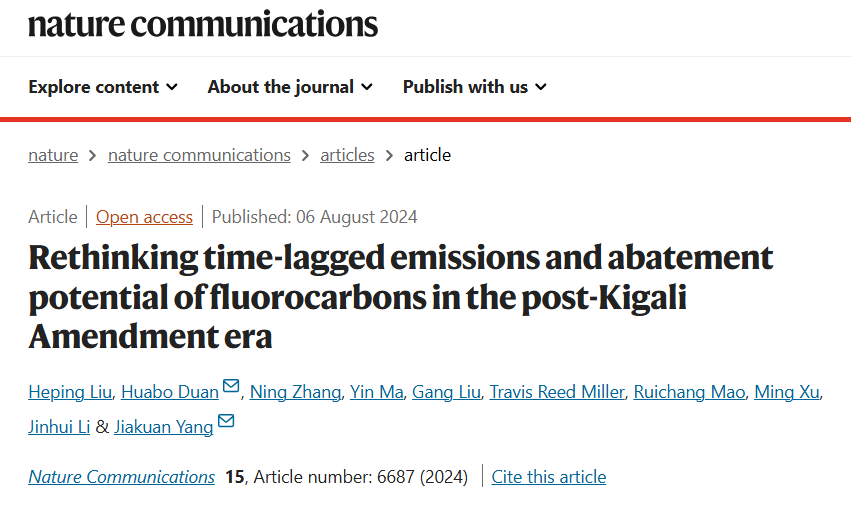 新闻网讯 近日,Nature Communications在线发表了题为“再思考后《基加利修正案》时代碳氟化合物的时间滞后排放特征和减排潜力”(Rethinking time-lagged emissions and abatement potential of fluorocarbons in the post-Kigali Amendment era)的最新研究论文,揭示了全球尺度存量碳氟化合物即HCFCs和HFCs等两类主要制冷剂/发泡剂的滞后排放特征及碳减排潜力。公司中方导师、环境公司杨家宽教授和环境公司段华波副教授为共同通讯作者,yl23455永利集团是唯一通讯作者单位,第一作者为广东石油化工公司刘和平博士。论文其他参与作者还包括德国德累斯顿工业大学/莱布尼兹生态城市与区域发展研究所张宁博士、广东石油化工公司马寅博士、北京大学城市与环境公司/北京大学碳中和研究院刘刚教授、美国缅因大学土木与环境工程公司Travis R.Miller助理教授、丹麦技术大学环境与资源工程公司毛睿昌研究员、清华大学环境公司徐明教授和李金惠教授。