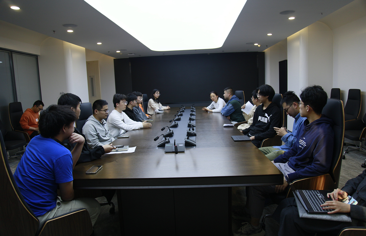 本次分享会采用座谈的方式进行。在赵怡婷的主持下,陈昊和刘洋老师进行了简单的自我介绍。同学们纷纷就出国留学、如何找一份适合自己的工作、升学的必要性等问题向陈昊咨询,陈昊为同学们一一解答所提出的问题,并就出国留学,出国升学这一方面提供很多宝贵的经验。