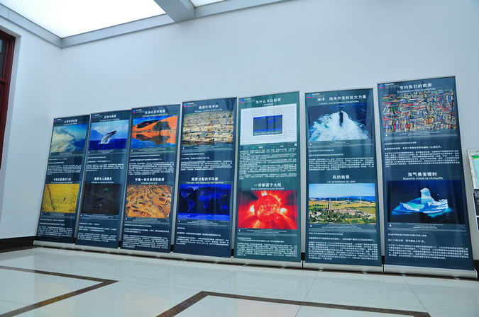 Starting with showing the importance of energy, of which the origin is sun, the exhibition uses several impressive pictures to demonstrate the history of using energy in human society. However, the using of oil, fossil fuel, etc., has been causing significant pollution and damage to environment, such as the emission of carbon, over exploring and using energy, conflict caused by seeking for oil, the imbalance of energy distribution, etc. The severe situation should draw everyone’s attention to work on setting up a reasonable energy system to protect ecological environment and realize the sustainable development.