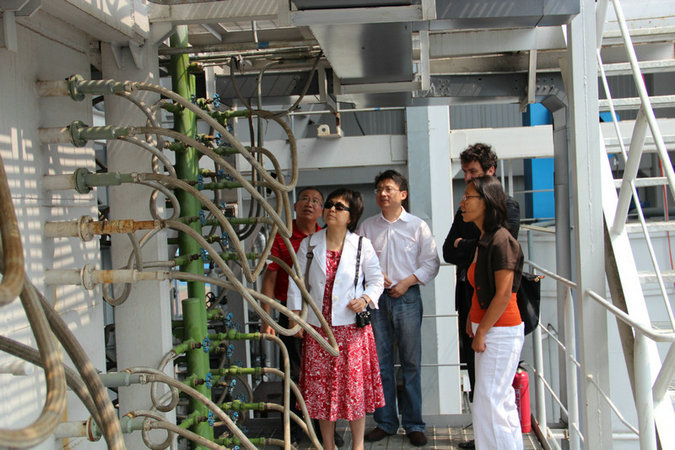 In the afternoon of May 30, the officials of the Delegation of European Union Ms. Wang Zhengyu and Ms. Anouk Albinovanus, guided by Professor Zhang, visited the 3MW carbon capture experimental base of Huazhong University of Science and Technology. After detailed introduction by Prof. Zhang, the two ladies express their strong interest in this experimental base. They thought that the base would be beneficial for further deepening cooperation between China and EU, expanding the cooperated research in this field, and building a larger, better and more commercial operating experimental base.