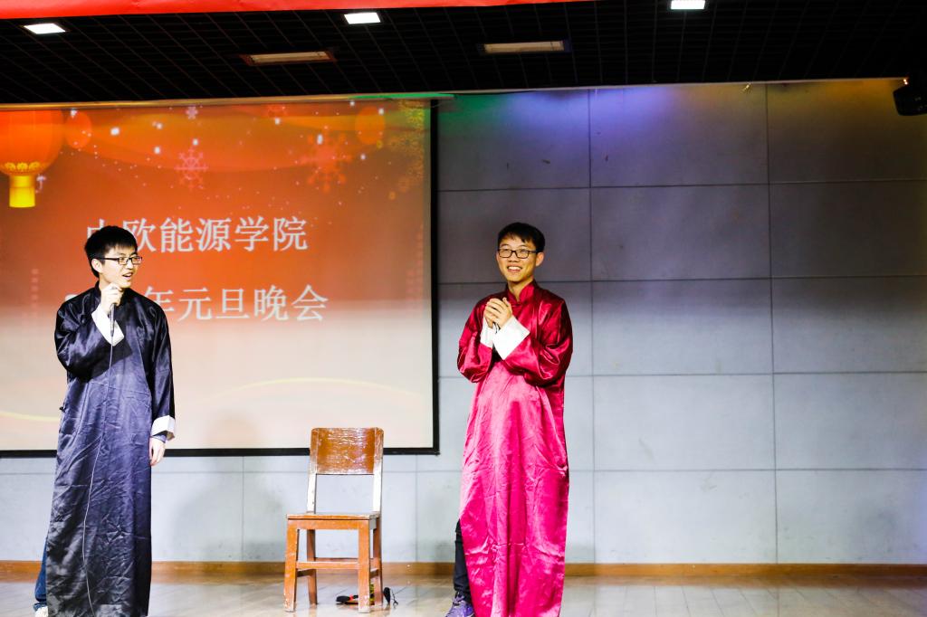 A two-man comic show given by students OU Han and Nie Shuai brought lots of fun to the party and received rounds of applause.