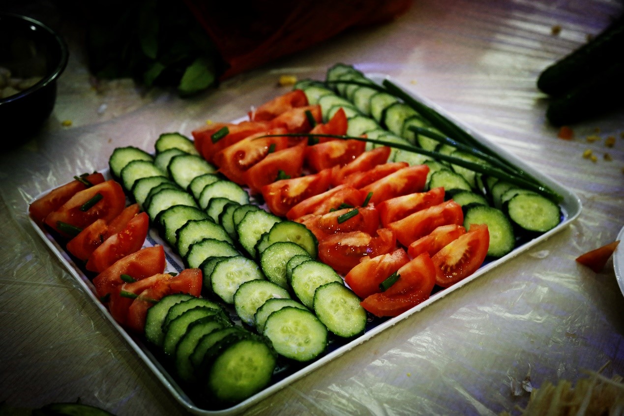 1) Preparing fillings, serving vegetable & fruits…the preparations for dumpling making were well underway.