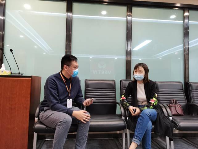 At 8 a.m. on December 4, Liang Yuanyuan led 12 students to Vertiv. The research group first visited the exhibition hall of Vertiv., where they have gained a detailed understanding of the company’s main products. They also visited the data center laboratory, lightning protection test laboratory, EMC laboratory, and security laboratory in turn, and had a deeper understanding of the importance of network energy equipment and the strength of Vertiv Company.