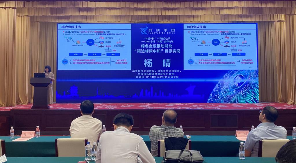 Prof.Yang Qing was invited to give a keynote speech entitled "Carbon Reduction Potential and Deployment Analysis of Biomass Negative Carbon Technology under Double Carbon Transformation" at the Sub Forum of Green Finance. Prof Yang Qing 's report mainly answered the question of how national and social capital should choose negative carbon technology, and introduced two key biomass based carbon negative emission technologies, namely biomass coupled carbon capture and storage (BECCS) and biochar (BC). She put forward that BC is a technology that is easier to implement in China in the near future, but its economy needs to be improved. On this basis, she proposed a new idea of biomass medium speed pyrolysis polygeneration (BIPP) coupling negative carbon, expounded the important impact of BIPP deployment on the realization of China's greenhouse gas emission reduction target, and analyzed the system economy and air quality cobenefits of national deployment of BIPP combined with biochar returning to the field. Finally, Prof. Yang Qing shared some thoughts: 1. The research results of integrated assessment models show useful reference value; 2. Regional characteristics shall be considered in the deployment of carbon neutralization technology; 3. Achieving the least costly carbon neutralization path is inseparable from impartial multidisciplinary cooperation.