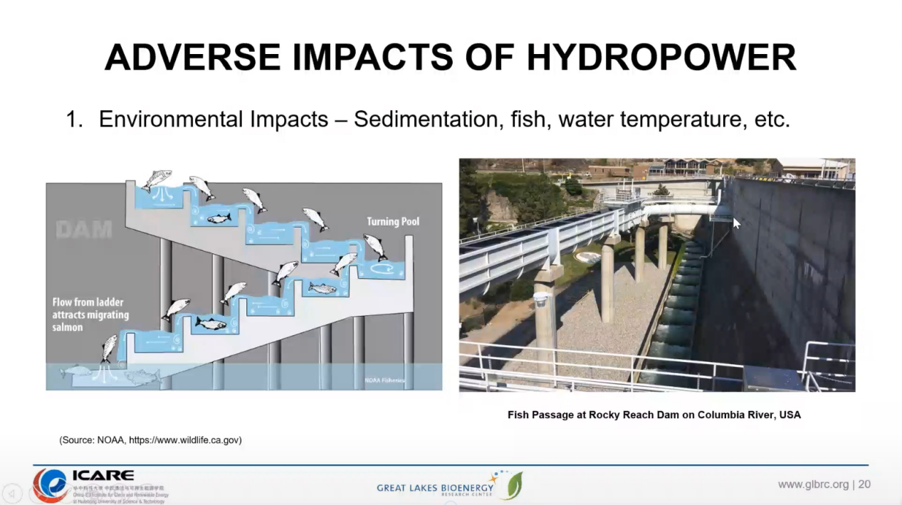 Ms. Yiying Xiong introduced the advantages and disadvantages of hydropower in detail and focused on its impact of aquatic organisms. Then she shared the measures taken by the Great Lakes to protect aquatic organisms. At the end, she held a Q&A session for the audience.