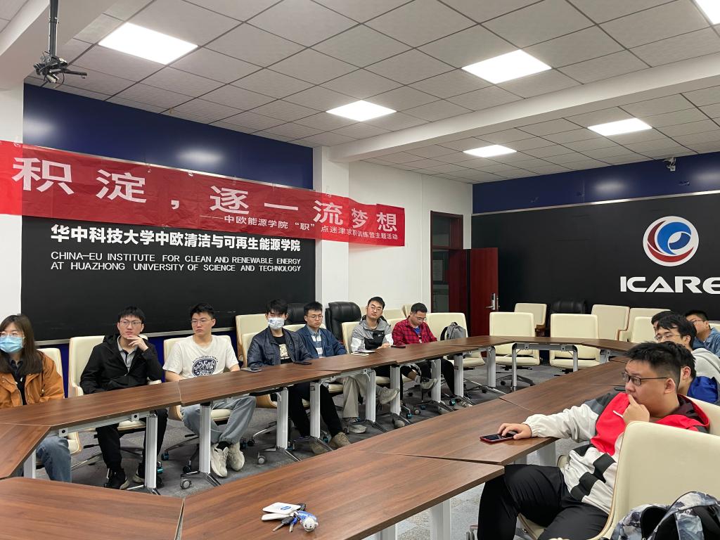 Ms. Liu Yang elaborated the policies of the "6+6" overseas study program. Then Mr. Tang Qinghui, a student of Class 2019 who has attended the program, shared his study and life experience in Europe, as well as scientific research and employment situation in the field of new energy. Mr. Tang Qinghui has provided an effective reference for students who are interested in internships in Europe. Finally, Ms. Liu Yang and Mr. Tang Qinghui answered the questions raised by the students.