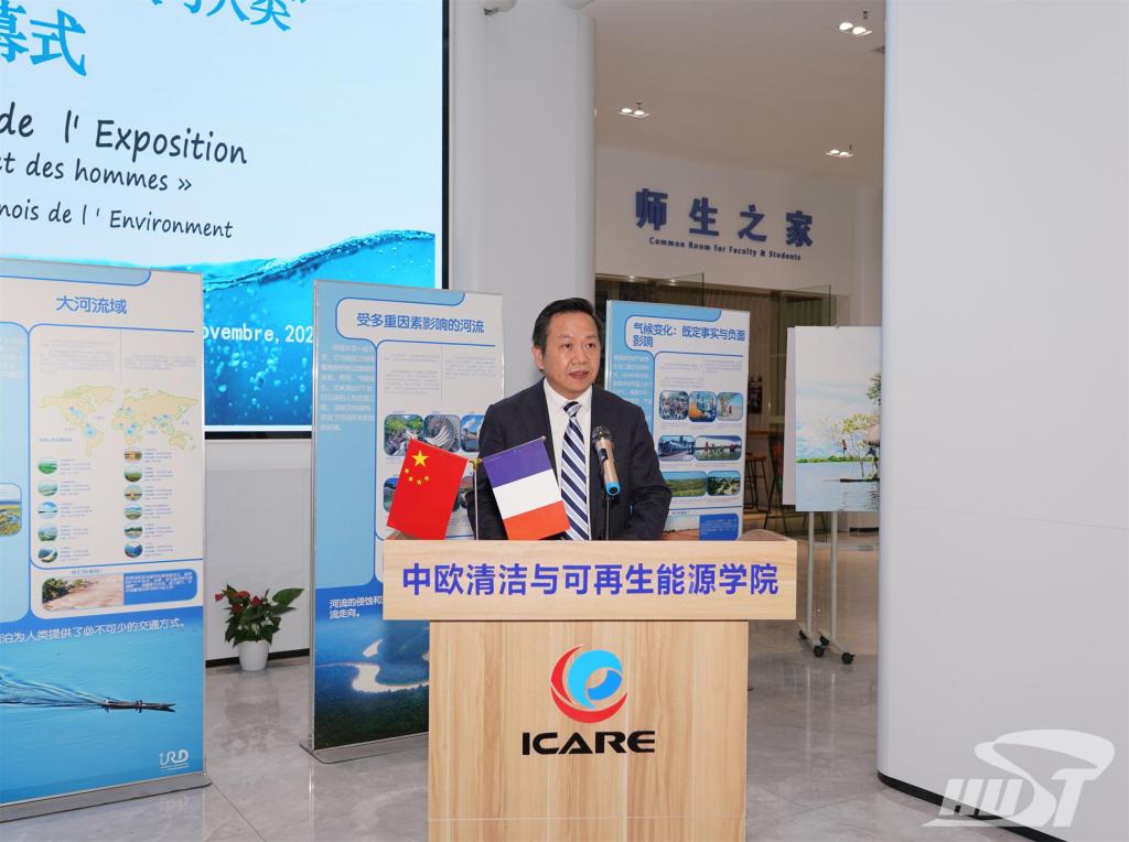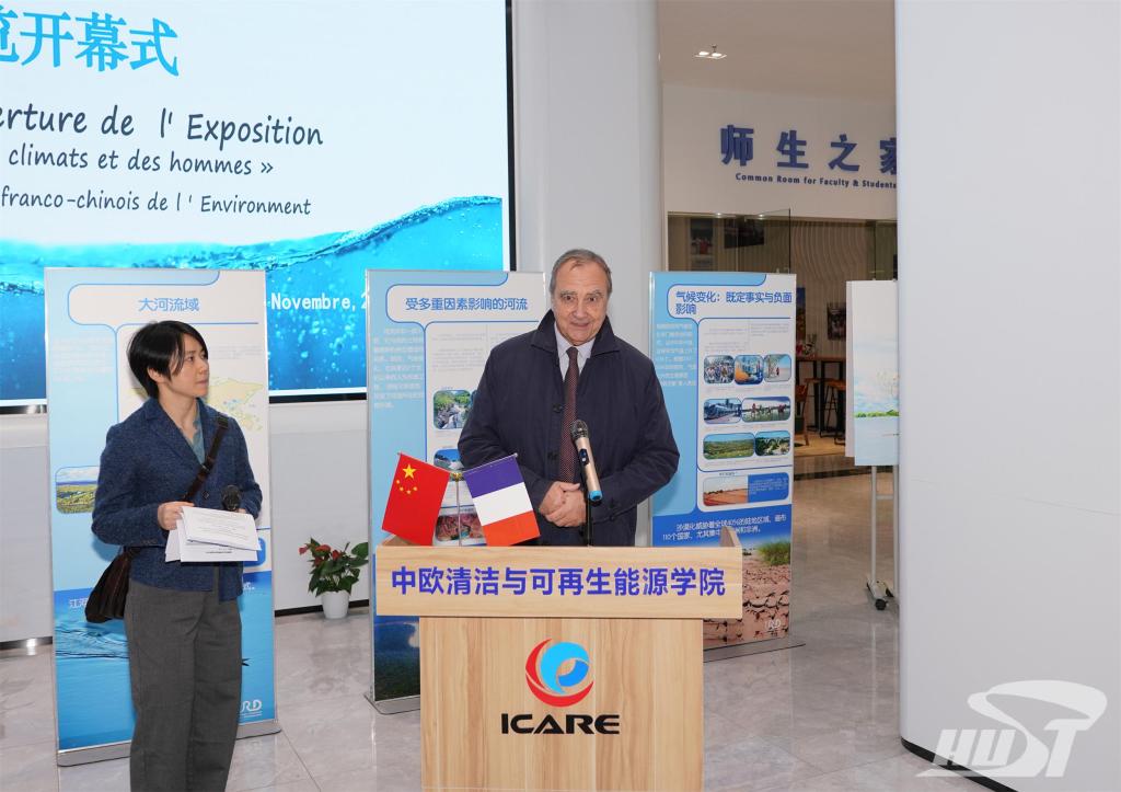 On November 16, the 9th Sino-French Environmental Month Wuhan Station series activities themed "Rivers, Climate and Human Beings" picture exhibition opened at Huazhong University of Science and Technology. Mr. Jean-Yves ROUX, French Consul General in Wuhan, and Prof. Chen Jianguo, Vice President of HUST attended the event. The event was hosted by Prof. Luo Xiaobing, the Chinese Dean of ICARE.