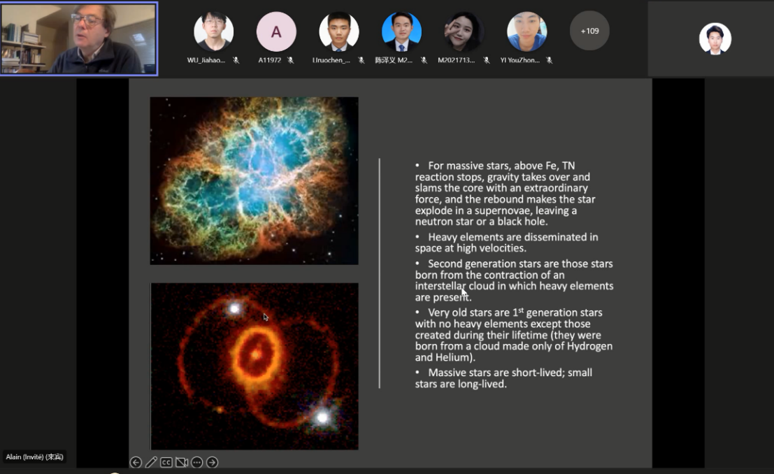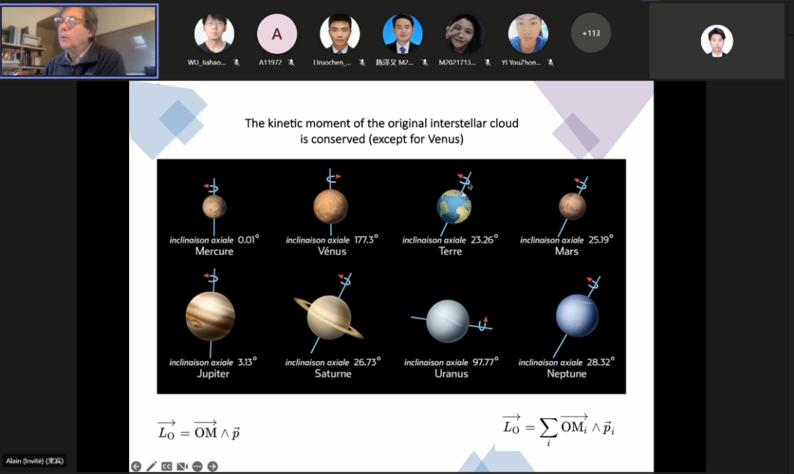 On November 30, 2022, Prof. Alain THOREL presented an online science and technology lecture entitled Astronomy and Materials to the students of ICARE. More than 140 students attended the lecture.