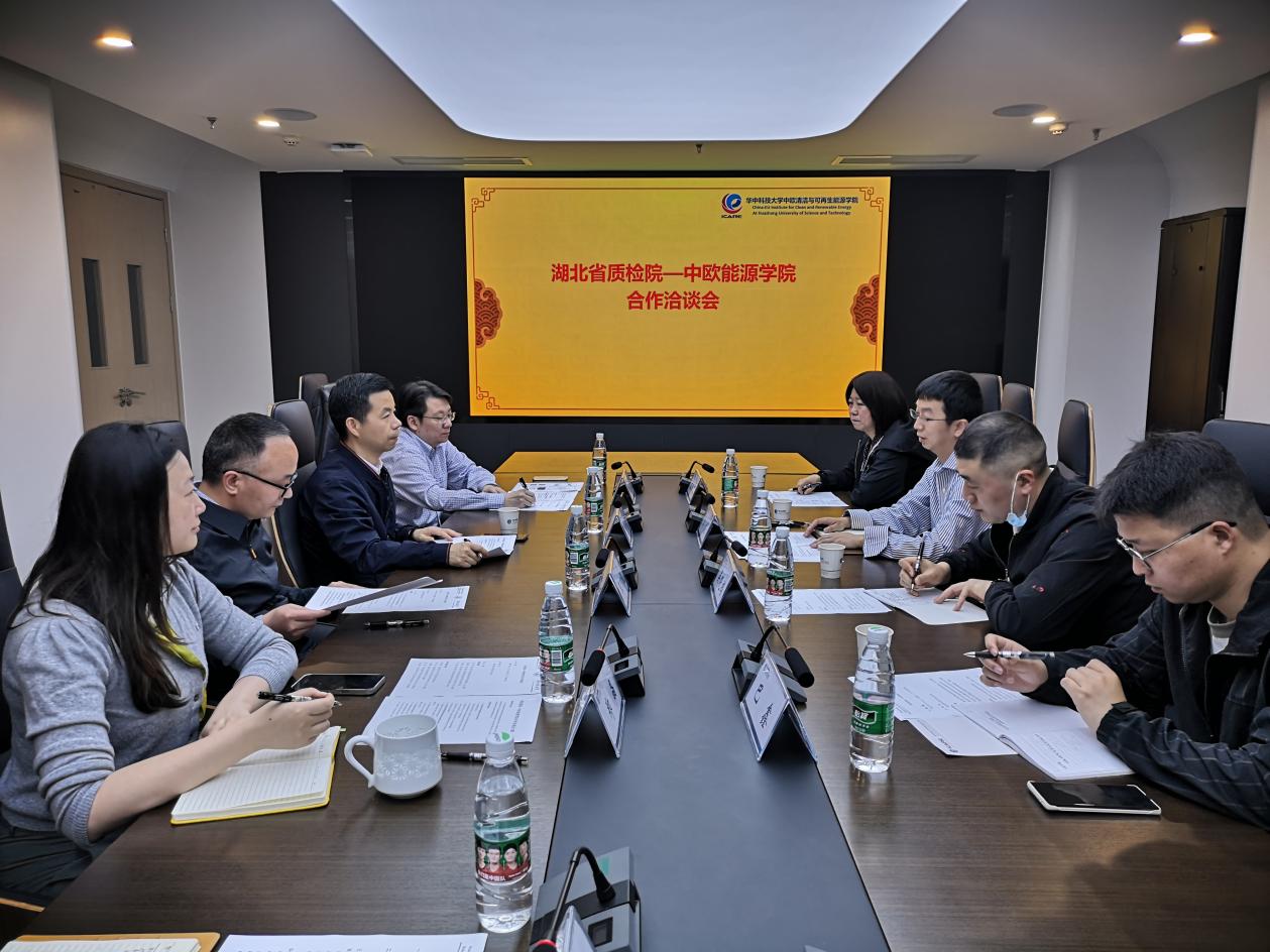 On the afternoon of April 11, 2023, Mr. Tian Kun, Deputy Director and chief engineer of Hubei Institute of Product Quality Supervision and Inspection, Mr. Wu Xiaohong, Director of the Institute of Energy, Provincial Quality Inspection Bureau, Ms. Wen Shurong, Chief engineer of Institute of Energy, and Mr. Ba Xin, Inspector, came to ICARE to discuss the joint application of State Key Laboratory for Market Supervision. Dr. Zou Mingqing, Vice Dean of our Institute, Prof. Hu Song, Director of the Research Center, Dr. Zheng Jing, director of the School-Enterprise Cooperation Center, and Prof. Wang Mingkui attended the meeting.