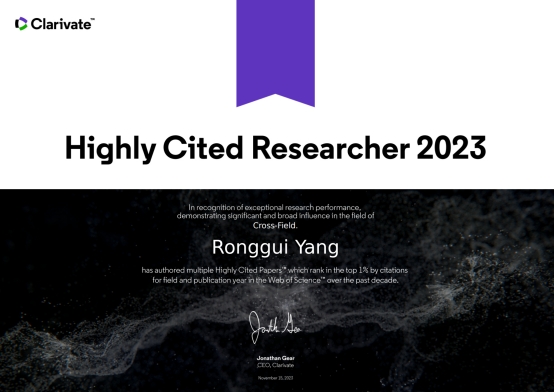 Clarivate, the world's leading provider of professional information services, released the list of global highly cited researchers on November 15, 2023. The list recognizes top scientific talents from universities, research institutions, and business organizations worldwide who have made significant and widespread contributions to their fields. This year, 6,849 scientists from over 1,300 institutions in 67 countries and regions were selected. Among them, 16 individuals from HUST were honored, including Professor Yang Ronggui from the School of Energy at Huazhong University of Science and Technology. Professor Yang Ronggui has been selected for three consecutive years since 2020 and is one of the few candidates in the field of heat transfer.