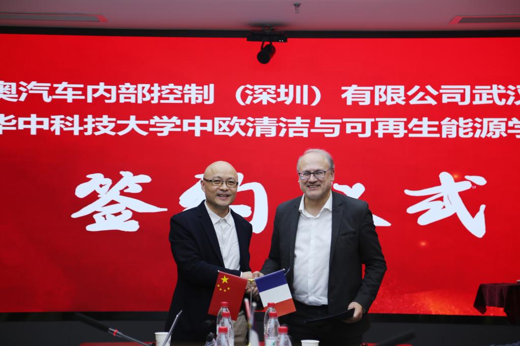 On March 22nd, ICARE and Valeo Interior Controls (Shenzhen) Co., Ltd. Wuhan Branch signed a memorandum of strategic cooperation. Mr. Emil Saban, Vice President of R&D & Projects, Mr. Yael Chambrin, Director of Software, Mr. Wang Changbo, Director of R&D, Mr. Zhou Zhanfeng, General Manager of R&D Center, Prof. Luo Xiaobing, dean of ICARE and Dr. Zou Mingqing, vice dean of ICARE, attended the signing ceremony.