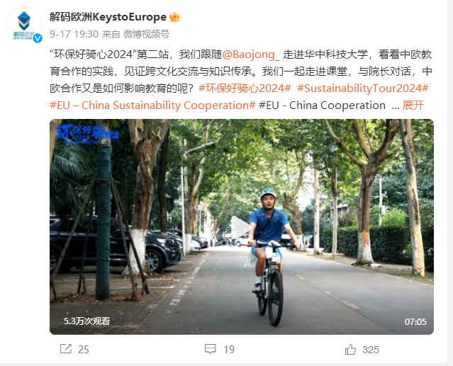 A video related to the event was released on the EU's "Keys to Europe" Weibo account on September 17, 2024, and received widespread positive feedback. Presented from the perspective of a cycling blogger, the video offers observations and insights through social media, featuring visits to teaching and research facilities, international classrooms, graduation events, and interviews with Chinese and foreign teachers and students. It highlights ICARE’s significant contributions to training international talents in the clean energy sector, advancing higher education, science and technology, promoting cultural exchanges between China and Europe, and supporting global green transformation and sustainable development.