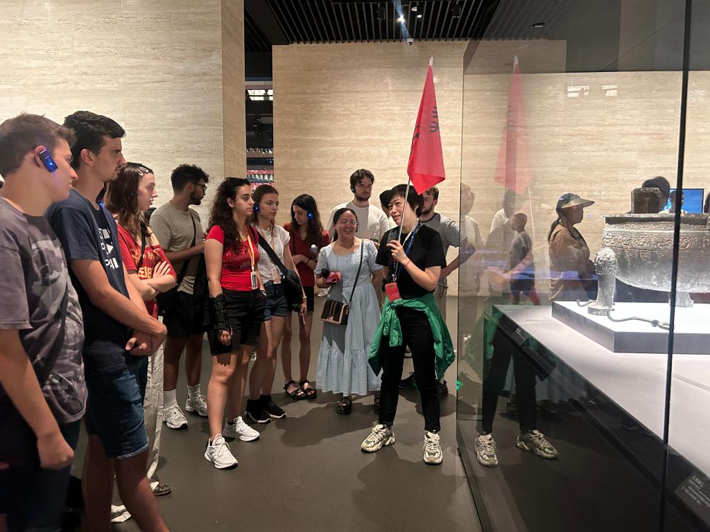 In the “800 Years of the Chu State” exhibition hall, artifacts ranging from chariots used in military affairs to statues dedicated to folk prayers collectively outlined the unique cultural features and spiritual world of the Chu State. These relics provided precious material evidence for the campers from around the world to understand the pattern of “diversity within unity” of Chinese civilization.