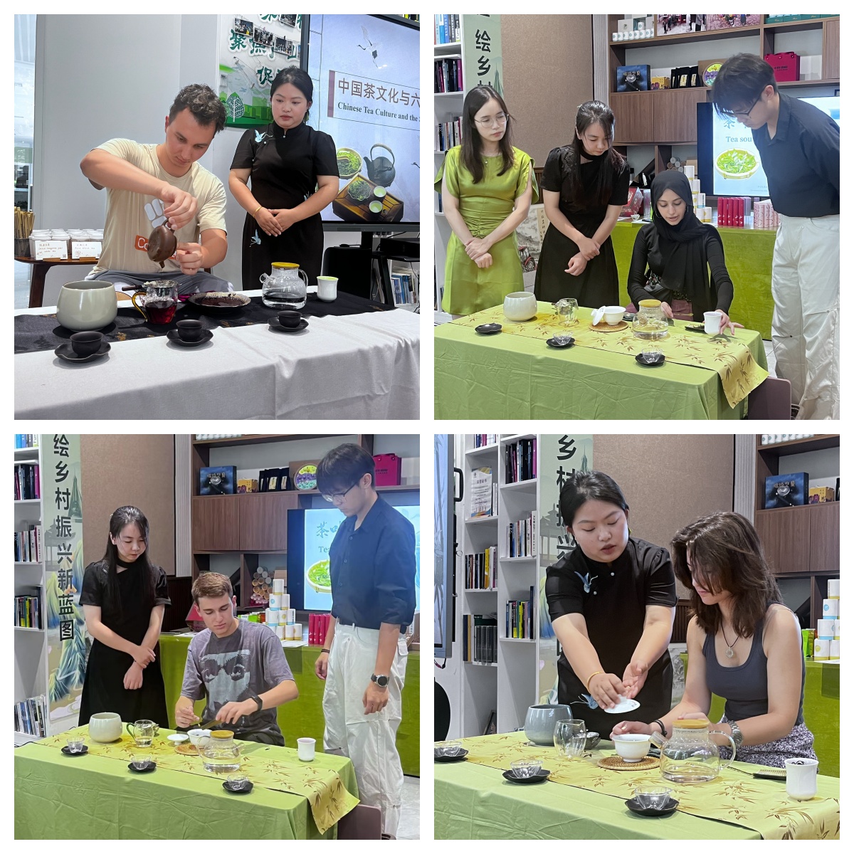 Shortly after, she demonstrated the brewing techniques of green tea and black tea on site. Each step—warming the teacups, adding tea leaves, pouring water, and serving the brewed tea—was performed with skill and elegance, embodying the demeanor of China, the world-famous “Land of Etiquette,” and drawing waves of applause. The campers then followed the tea artist’s movements to try brewing tea themselves. They were extremely focused, and the process was filled with joy. Meanwhile, they did not forget to take out their mobile phones to record these wonderful moments, hoping to bring this oriental tea charm back to share with their family and friends.
