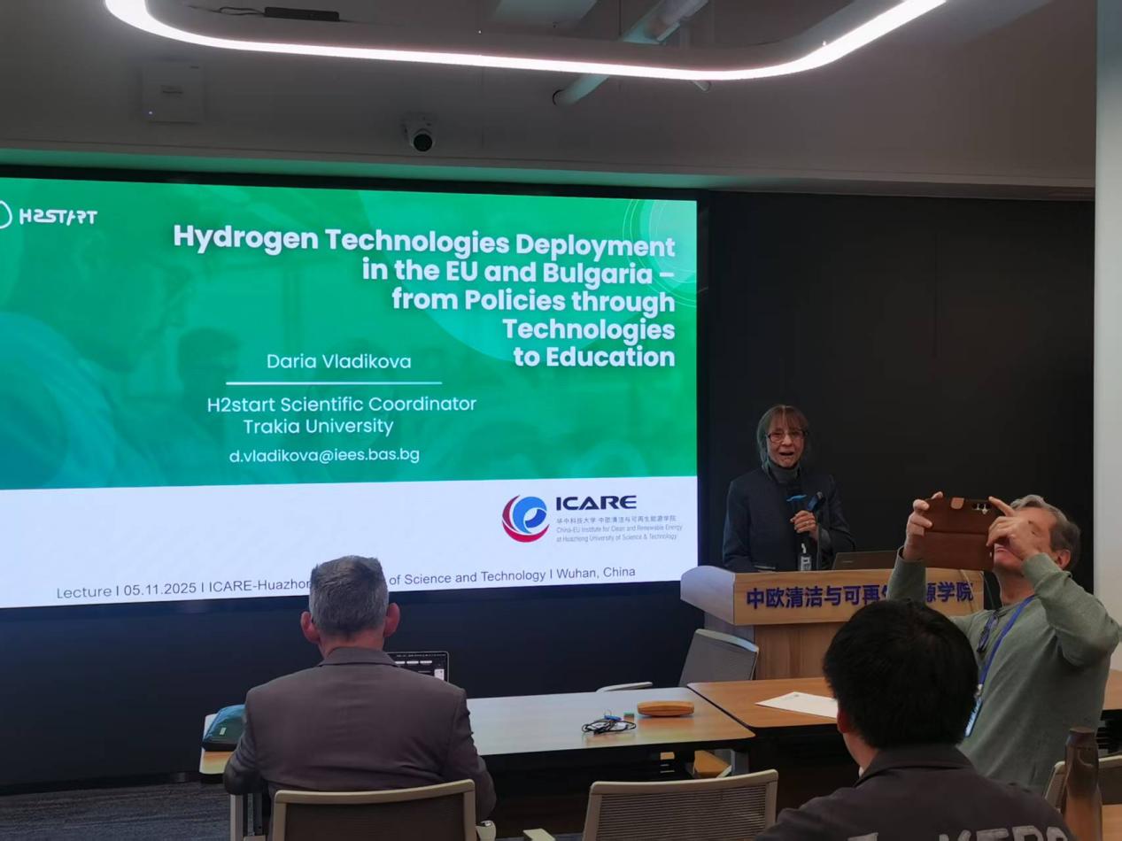 On November 6, 2025, ICARE hosted Dr. Daria Vladikova, Professor at the Bulgarian Academy of Sciences and Trakia University, and Chair of the Scientific Committee of the Bulgarian Hydrogen, Fuel Cells and Energy Storage Association, for an academic lecture titled “Hydrogen Technology Deployment in the EU and Bulgaria – From Policies, Technologies to Education.” Nearly 100 professors and students from various countries joined the event both online and offline.